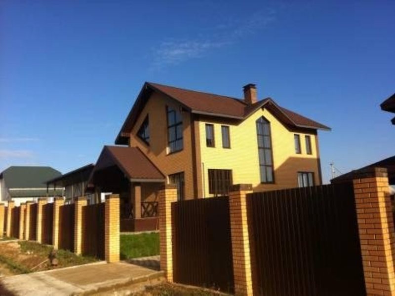 (кирпич/мет. Проф.лист).На участке из тротуарной плитки выложены дорожки. Шикарный дом