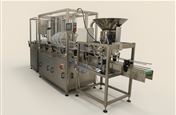 "Предназначен для цилиндрических бутылок (винные, косметические). Производительность до 40 шт/мин. Оснащен позиционирующим устройством, возможна установка ленточного или струйного принтера для