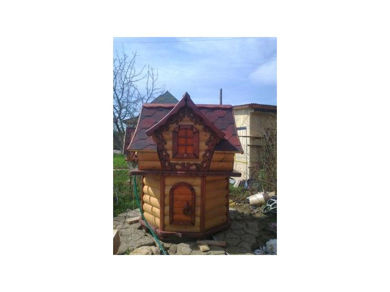 Колодезные домики, оголовки, скворечники, кормушки, мебель для бани и сауны резная браширование,
