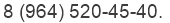 Тел: 8 (964) 520-45-40.