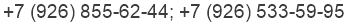 телефоны: +7 (926)855-62-44, +7 (926)533-59-95
