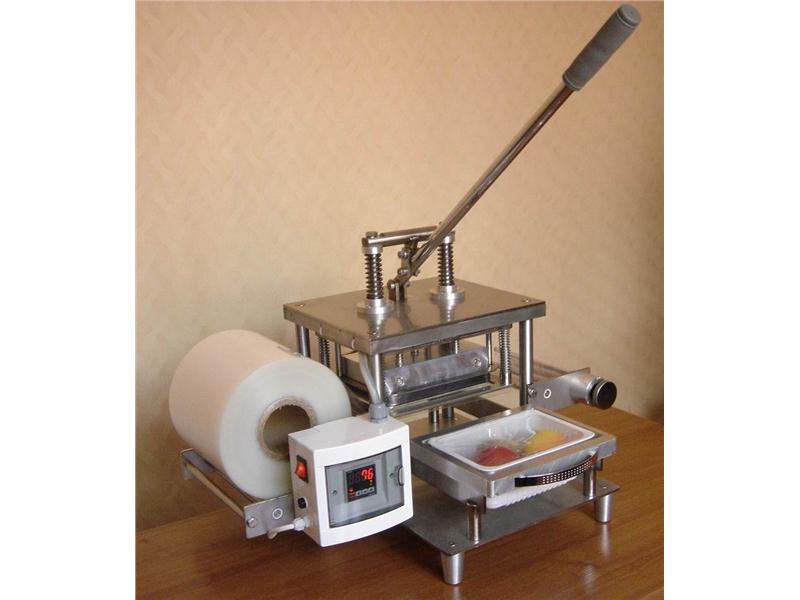Настольный запайщик (трейсилер) для герметичной упаковки пищевых продуктов (готовых блюд, салатов, суши, полуфабрикатов, кондитерских изделий и т. п. ) из полимерных пленок. Вырубка производится по контуру контейнера. Высокое качество запайки и сборки. Изготовлен из нержавеющей стали. Производство - Израиль.