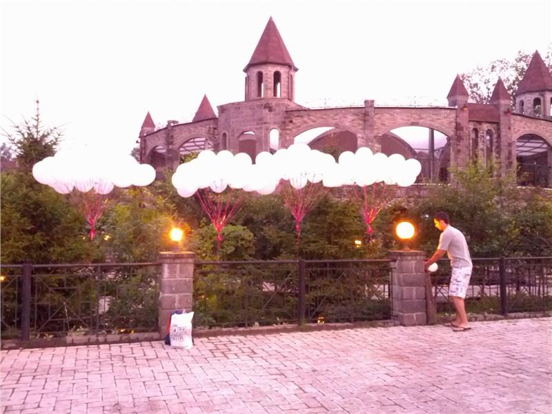 -запуском салютов из шаров (в том числе светящихся шаров)