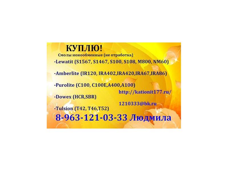 Скупаем невостребованный, излишки, остатки Lewatit (Леватит) 1567, S 108, M 800, M 500, NM 60. Покупаем с ТЭЦ, котельных, предприятий и т. д. Ежемесячные большие потребности. Самовывоз из любого города России. Тел. 89631210333 Людмила