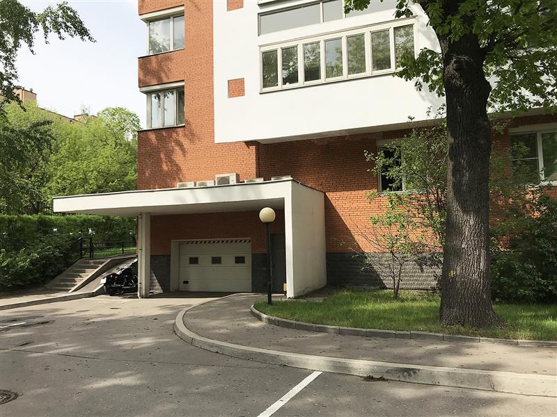Под домом есть двухуровневая автомобильная парковка. Территория вокруг дома закрытая, за высоким забором на монолитном фундаменте и зелеными кустовыми насаждениями, с въездным шлагбаумом, круглосуточной охраной и консьержем.
