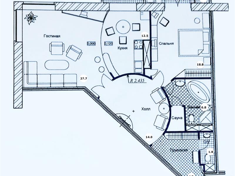 В квартире полный комплект бытовой и кухонной техники (Siemens, Германия), дизайнерская встроенная кухня (Berloni, Италия). Вся мебель импортная (Италия, Финляндия), сантехника - Grohe, Германия).