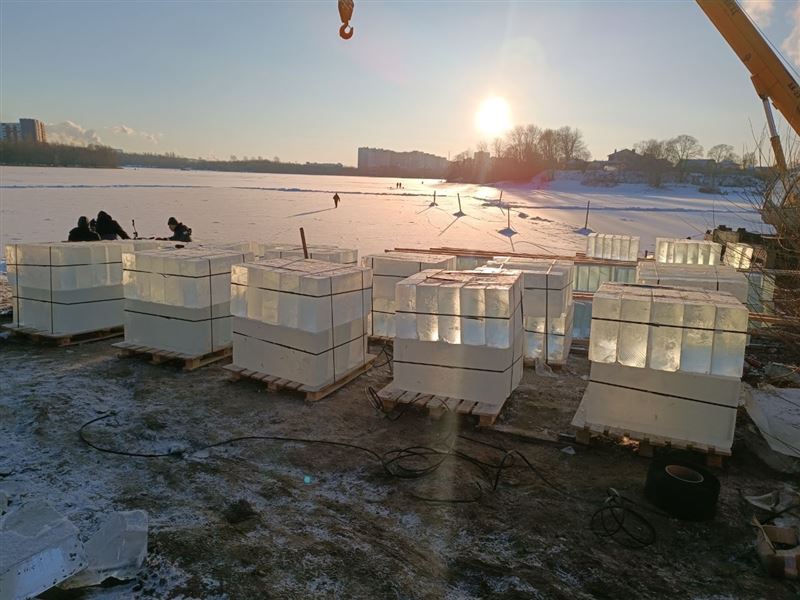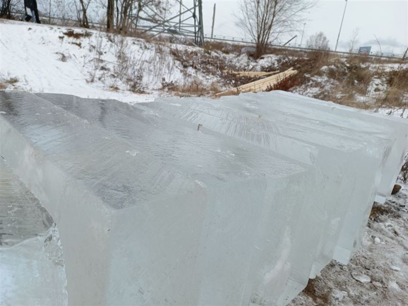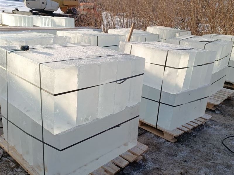 Лед идеальной геометрии, добычу производим станком, грани и углы выдержаны, что важно для работы скульпторов