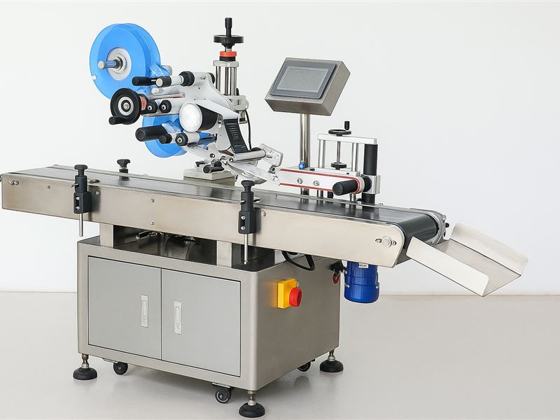 "Этикетировочный автомат ЭМ04. 03 с узлом приглаживания предназначен для нанесения самоклеящихся этикеток на плоскую и сложную тару. Для качественного приглаживания этикетки предусмотрен мягкий приводной узел.