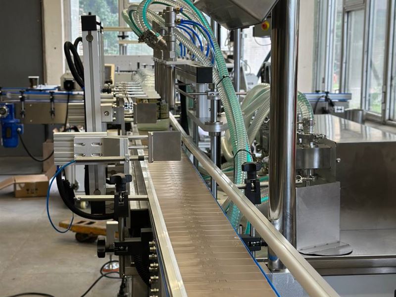 "Автоматический аппарат для розлива жидких продуктов. 6 дозирующих головок, высокая точность (0, 5-1%), производительность до 1600 шт/ч, объем 0, 5-5 л. Нержавеющая сталь AISI 304, сенсорный пульт управления, магнитные насосы. В комплекте: рама, экраны, транспортер 2м.