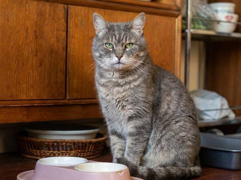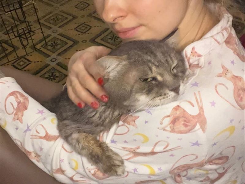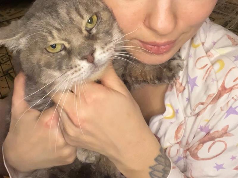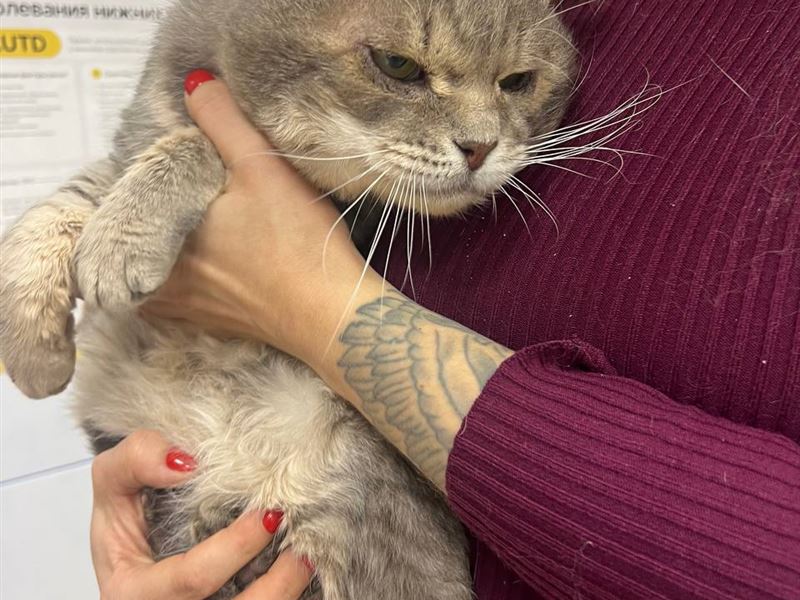 Пристраивается красивейший крупный серый кот по имени Котя,
