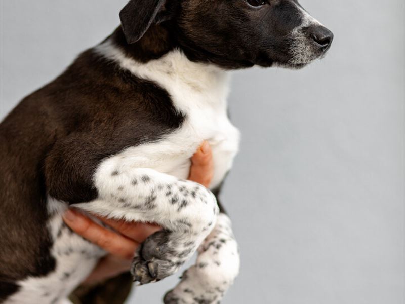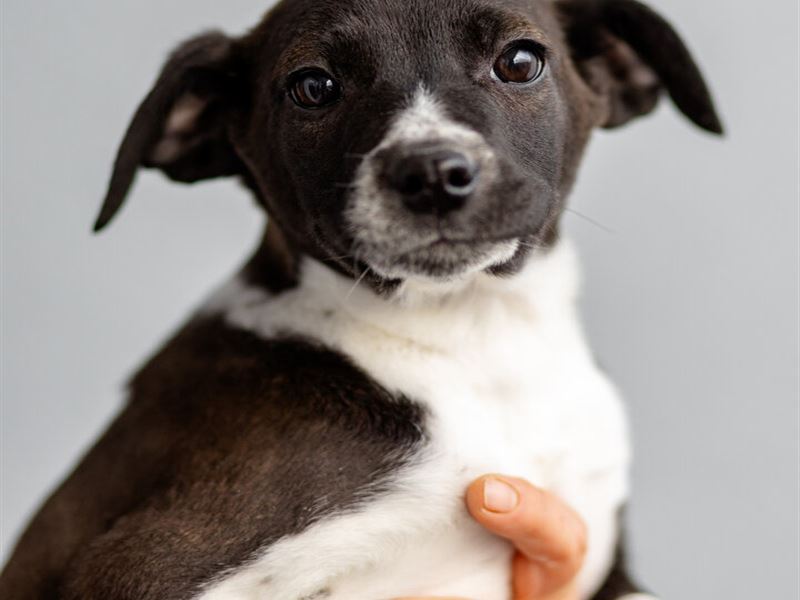 Кроха, выброшенная в морозы на споттинг - Чижик. Он весит сейчас примерно 4 кг. ему не больше 2- месяцев. Мальчик. Очень симпатичной расцветки. Белый с черным. Скорее всего будет крупным (в районе 20 кг), но не гигантом. Привит, здоров, жизнерадостен, не пуглив. Очень стремится к общению с человеком. Классный малец!