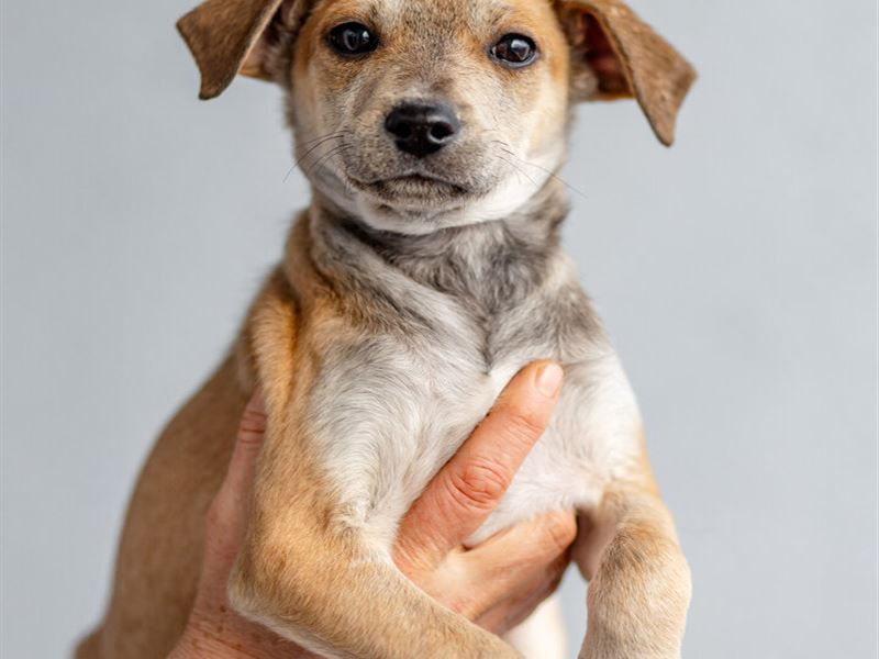 Печенька (бежевая) и Капучинка (шоколадная с белым) - им сейчас 4+ месяца. Девочки. Они здоровы и вакцинированы. Подвижные, веселые, с характером. Щенки весят сейчас около 4 кг. Они точно не будут больше, чем 10 кг, судя по размерам и весу в их возрасте.