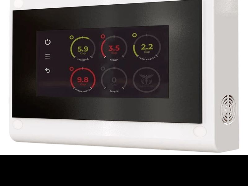 Многофункциональный терминал мониторинга с LCD-дисплеем, предназначенный для управления и удаленного контроля до 32-х контрольно-запорных устройств. Размещается на сестринском посту и позволяет отслеживать показатели манометров на каждом из подключённых к нему устройств, задавать параметры срабатывания оповещений в случае отклонения давления на одном из участков газопроводных магистралей, а также отключать сигнализацию непосредственно на терминале.