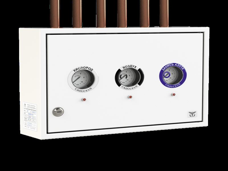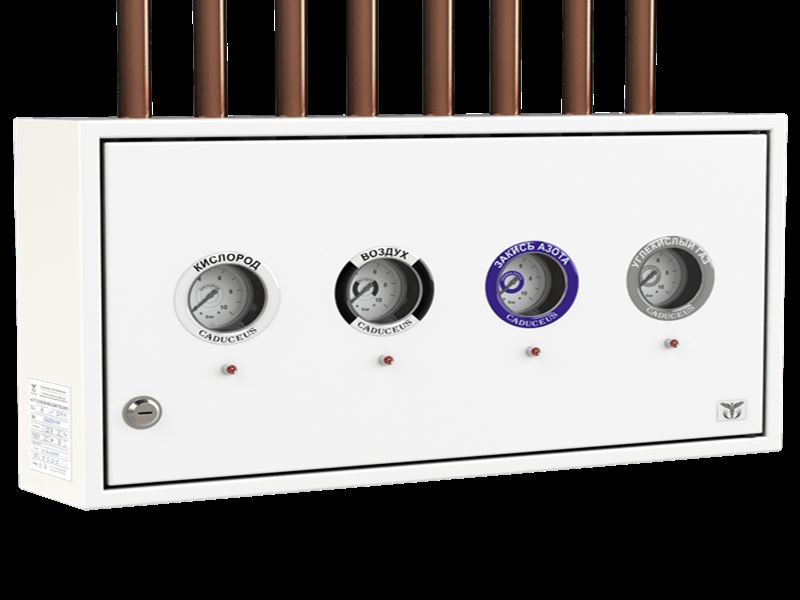 Широкая линейка вариантов исполнения обеспечивает возможность подключения к контрольно-запорному устройству до 6 различных магистралей медгазов одновременно.