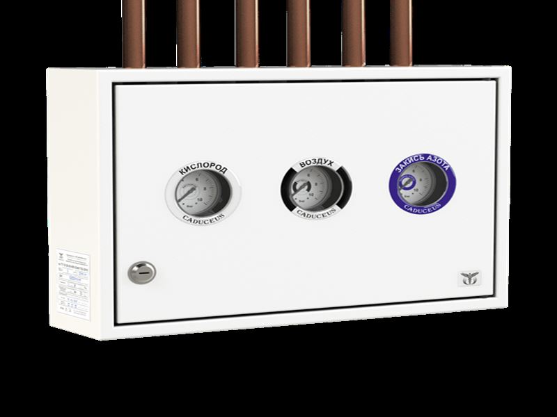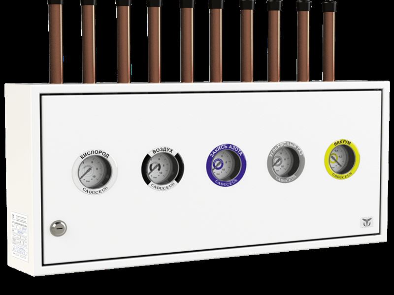 Данные поэтажные коробки обладают базовым функционалом и позволяют осуществлять непрерывный визуальный контроль за давлением в системе медицинского газоснабжения.