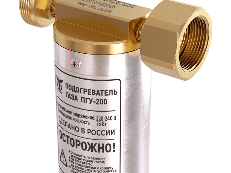 За счет теплообмена между стенками нагревателя и газовой смеси температура нагрева достигает +65°С. Безопасность использования универсального подогревателя газа обеспечивается изолированностью датчика температуры и нагревательного элемента устройства от воздействия высокого давления и газовых смесей. Корпус подогревателя газа CADUCEUS выполнен из латуни, что гарантирует высокий уровень прочности изделия и устойчивость к климатическим условиям, существенно повышая длительность эксплуатации изделия.