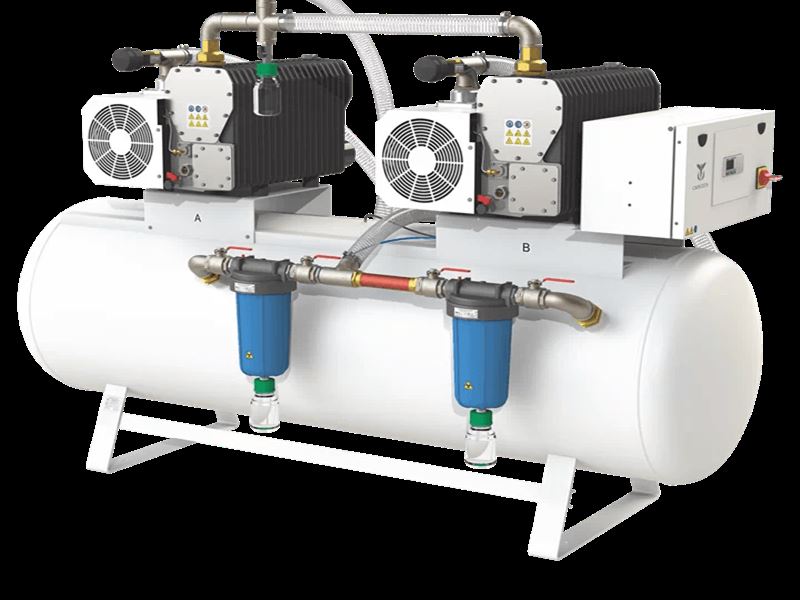 Вакуумная станция оснащена двумя (исполнение HOSPIVAC 2) или тремя (исполнение HOSPIVAC 3) вакуумными насосами на горизонтальном ресивере. Используются ротационные лопастные вакуумные насосы с принудительной смазкой и воздушным охлаждением. Вакуумные насосы могут включаться каскадно и подбираются в зависимости от предполагаемого потребления вакуума.