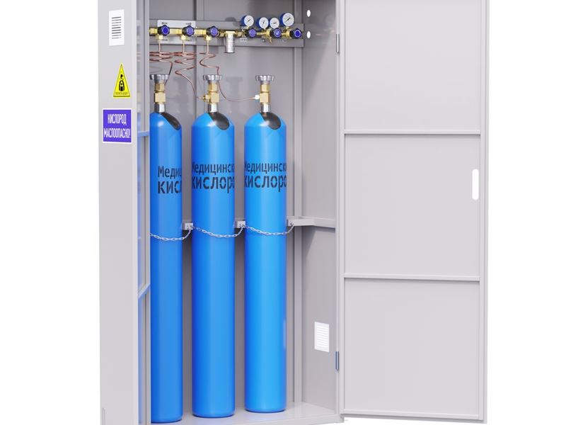 Линейка одноплечевых рамп CADUCEUS разработана для медицинского и технического кислорода, закиси азота и углекислого газа с возможностью подключения от 1 до 10 баллонов, предусмотрено исполнение в шкафу.